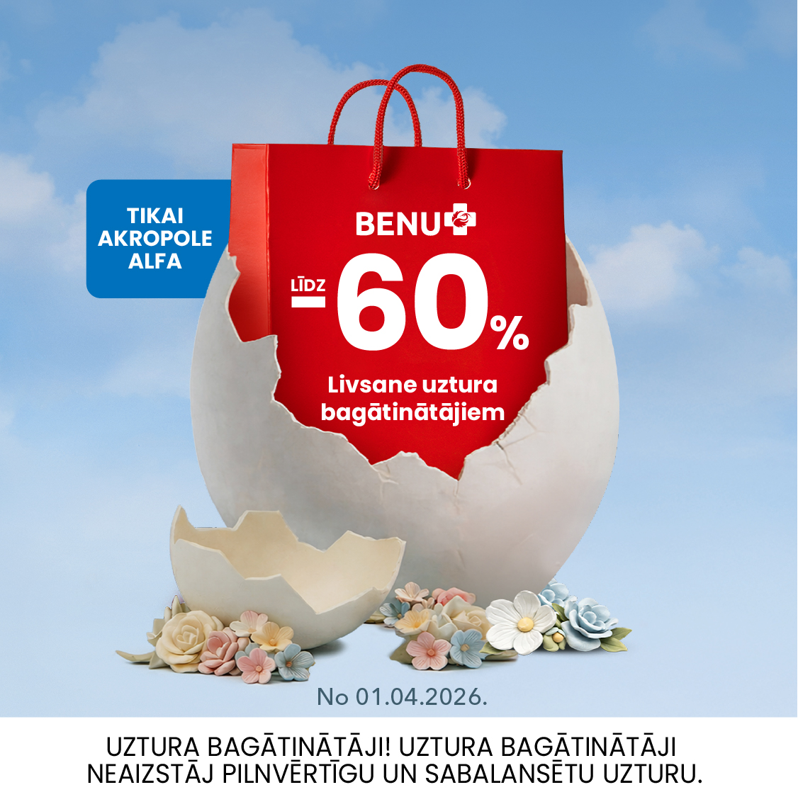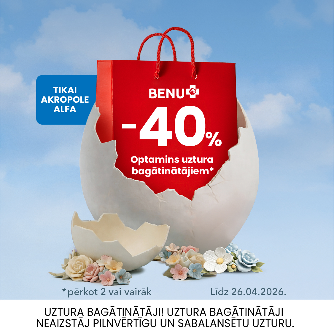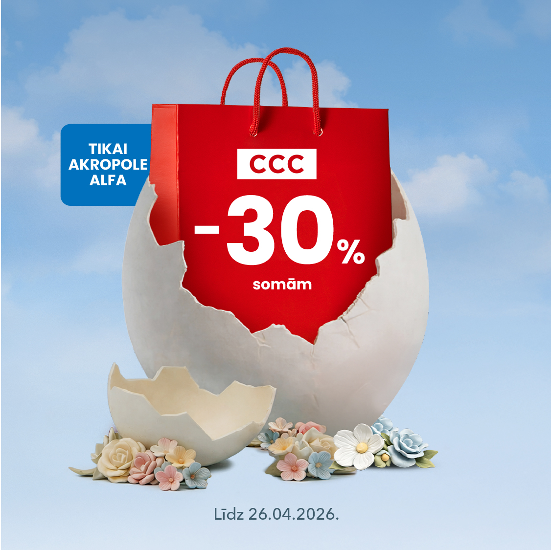 Publicētā informācija par akcijām/atlaidēm ir informatīva un balstīta uz tirgotāju sniegto informāciju. Sīkāku informāciju par akciju un atlaižu piedāvājumiem, to noteikumiem un termiņiem aicinām noskaidrot pie konkrētā tirgotāja. Iepirkšanās un izklaides centri „AKROPOLE Alfa“ un “AKROPOLE Rīga” (to īpašnieki) neuzņemas atbildību par atlaižu/ akciju nosacījumu vai termiņu izmaiņām, to aktualitāti.
