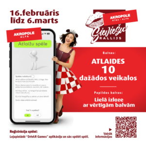 Savācot foto ar visu 10 veikalu logo, dalībnieks varēs papildus reģistrēties AKROPOLE Alfa atlaižu spēles lielajai izlozei, kur būs iespēja laimēt vērtīgas balvas un dāvanu kartes no: