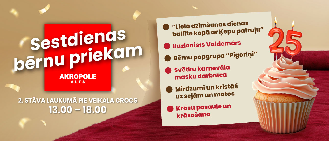 Sestdienas bērnu priekam katru sestdienu “AKROPOLE Alfa” 13:00-18:00