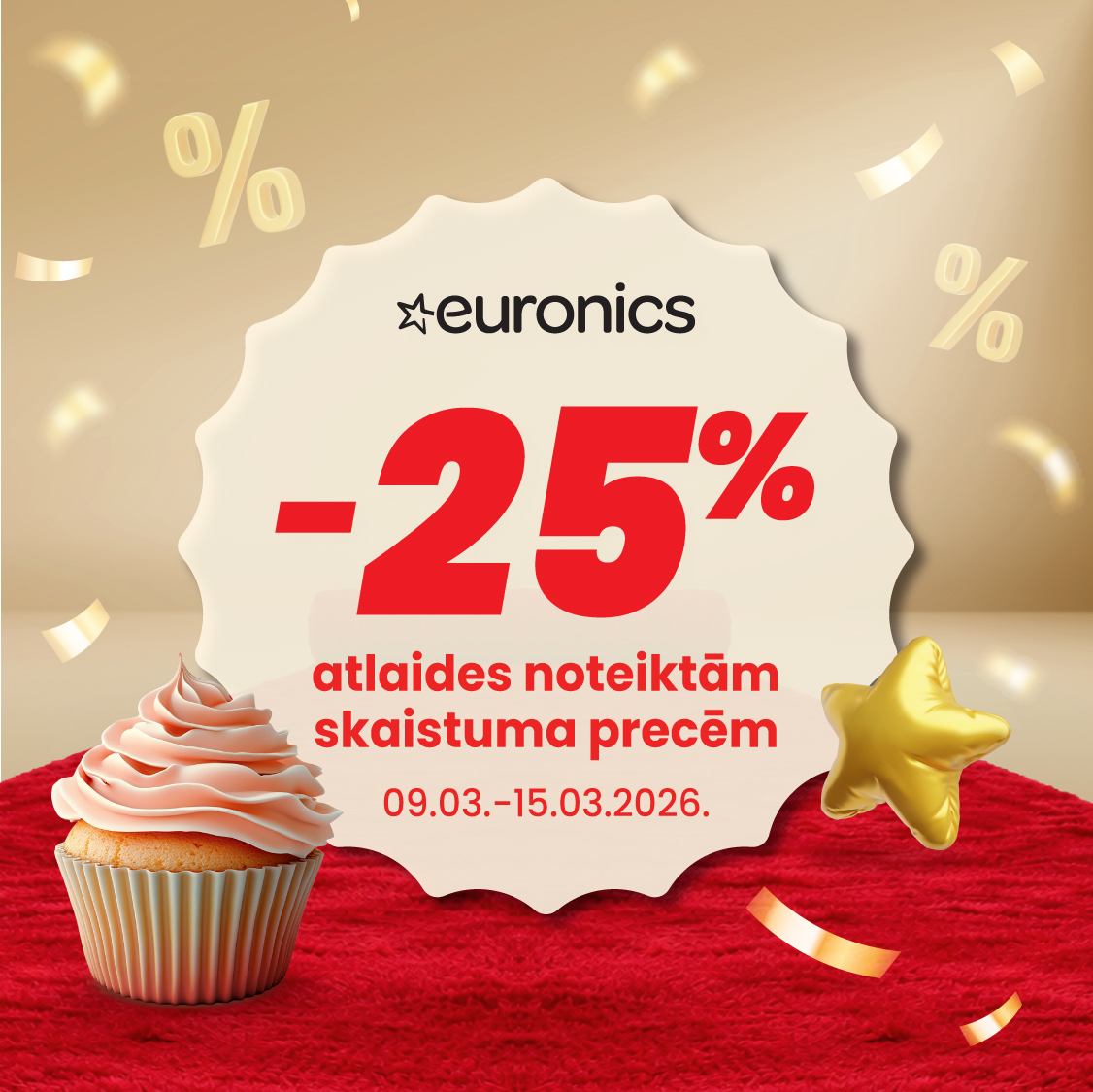 | EURONICS | Līdz -25% atlaide noteiktām skaistuma precēm. Līdz -30% atlaide noteiktiem Tefal karstā gaisa friteriem. Līdz -25% atlaide noteiktiem Siemens kafijas automātiem. Pērkot noteiktus Philips Ambilight televizorus, dāvanā Soundbar mājas kinozāle 170 € vērtībā. 09.03.-15.03.2026. |