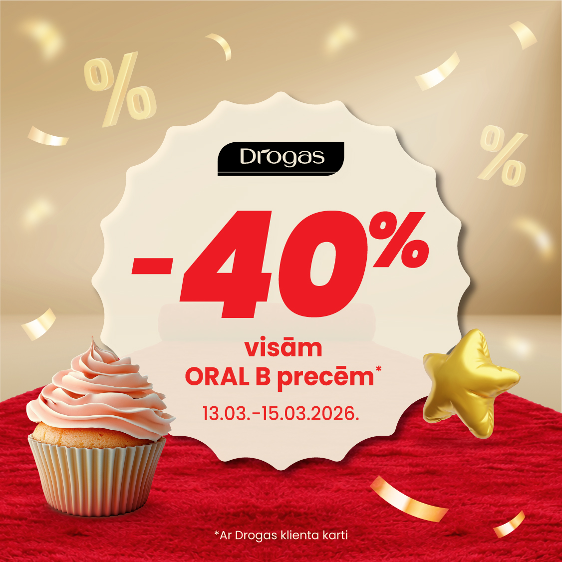 | DROGAS | -40% atlaide visām Oral-B precēm ar Drogas klienta karti. 13.03.-15.03.2026. |