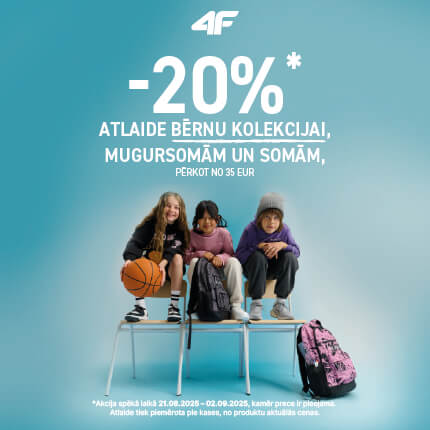 4F. – 20 % ATLAIDE BĒRNU KOLEKCIJAI, MUGURSOMĀM UN SOMĀM, PĒRKOT NO 35 EUR