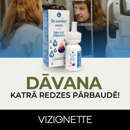 Visu augustu un septembri VIZIONETTE optikas salonos ikvienā redzes pārbaudē saņem kā dāvanu Dr.Lensor DROPS acu pilienus — rūpīgi izstrādātu acu mitrināšanas un aizsardzības līdzekli, kas radīts, lai nodrošinātu acīm maksimālu komfortu.