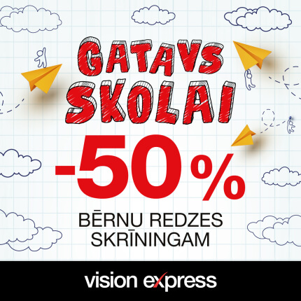 No 1.jūnija līdz 31.jūlijam visos Vision Express veikalos bērnu redzes skrīningam tiek piemērota 50% atlaide.
