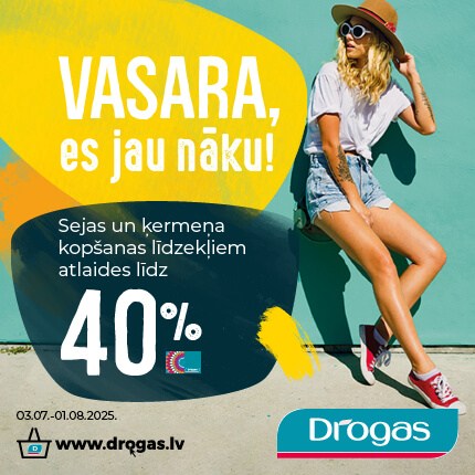 Veikalos Drogas sejas un ķermeņa kopšanas līdzekļiem atlaides līdz 40%! Vairāk informācijas www.drogas.lv